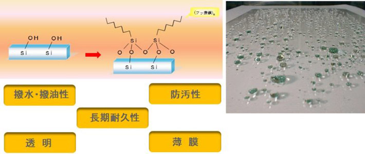 透明性があり、高い撥水性能・撥油性能を有してます。